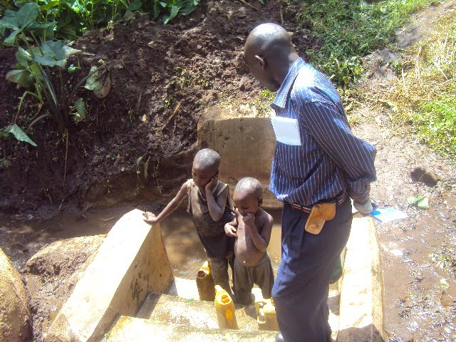 Leader of PRIFODE monitoring the water source in Magunga before presenting the issue on Radio
